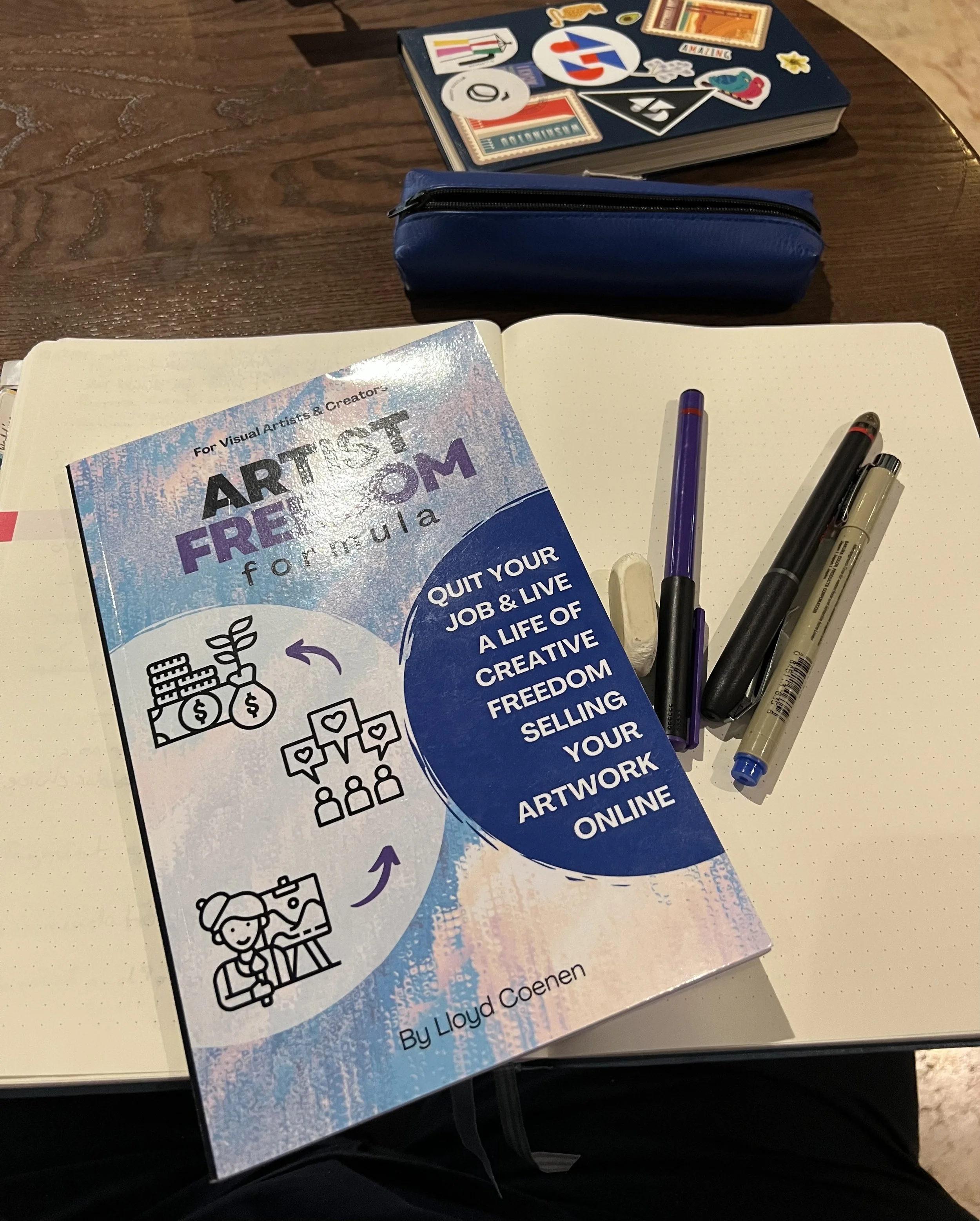 As part of an ongoing series, on Department 45.eu, we’ve been reading, analyzing, and reviewing some of the most commonly recommended Art Business books. We identified five that appeared on several lists and so far, have reviewed, great and good versions. Steal like an Artist by Austin Kleon was simple yet deep, full of affirming ideas and speaking to the souls and challenges of artist. The Art Inc by Lisa Congdon was a very detailed if dated book that provided a good outline of topics to consider when setting on the art business journey. The next book in our series, The Art Freedom Formula, (ISBN: 979-8-35-522403-5) by Lloyd Coenen, is neither of these. It represents a great contradiction to the previous two books. Let’s explore how.